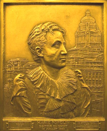 La Cour de cassation du Palais de Justice de Bruxelles a résonné le 6 mars 2009 des discours du Premier Président de la Cour de cassation, des autorités du monde judiciaire et d'avocats belges et étrangers qui, profitant de l'hommage posthume rendu enfin à Marie Popelin, ont souvent déploré, statistiques à l'appui, combien les femmes ont encore à se battre pour faire reconnaître leur droit élémentaire à la parité, l'égalité des chances ou simplement de revenus égaux pour le même travail. Une ancienne candidate à la présidence du Bénin, avocate elle aussi, a retracé les embûches inouïes auxquelles elle a dû faire face. Elle a fait vibrer la salle par sa volonté de continuer ses combats. Mais nous étions toutes là, de la féministe de base à la secrétaire d'Etat, en passant par toutes celles qui ont fait de leurs revendications égalitaires le slogan de leur vie, dans une euphorie douce-amère, pour rendre un peu justice - et l'endroit était propice - à la première femme docteur en droit de Belgique et la première à demander sans succès à être admise à la profession d'avocat. Intéressante exposition aussi de caricatures, photographies et illustrations, et apposition dans le couloir des avocats d'un bas-relief réalisé par l'avocat de La Palud. Il représente Marie Popelin devant le Palais de Justice (issu des collections de l'ULB). En disponibilité à 37 ans, Marie Popelin entama des études de droit à l'ULB. Malgré la qualité des défenseurs qui plaidèrent son admissibilité devant la Cour d'Appel en 1888 (Me J. Guillery, deux fois Bâtonnier, Député, futur Ministre d'Etat, et Me L. Frank, jeune avocat brillant), l'arrêt de la Cour d'appel considéra que:«?la réserve inhérente à son sexe, la protection qui lui est nécessaire, sa mission spéciale dans l'humanité, les exigences et les sujétions de la maternité? la direction du ménage?, la placent dans des conditions peu conciliables avec les devoirs de la profession d'avocat et ne lui donnent ni les loisirs, ni la force, ni les aptitudes nécessaires aux luttes et aux fatigues du Barreau».